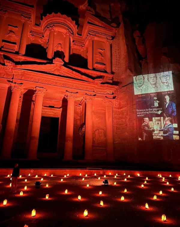 • سلطة البترا تنير واجهة الخزنة تكريمًا لعمر ياغي بعد فوزه بجائزة نوبل للكيمياء 2025