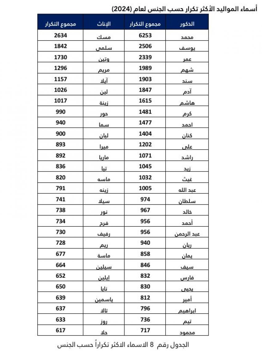 “محمد” و“مسك” يتصدران قائمة أسماء المواليد في الأردن لعام 2024