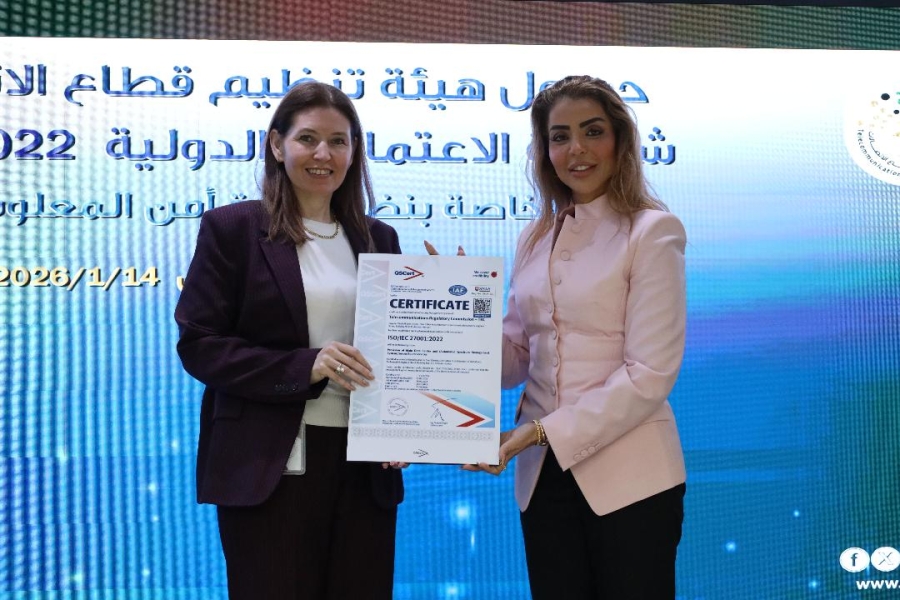 • هيئة تنظيم الاتصالات تحصل على شهادة الاعتماد الأوروبية الدولية " الأيزو 27001 : 2022 "