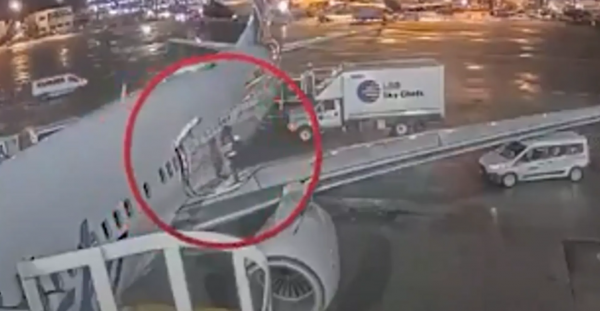 سيدة تفتح باب الطوارئ في الطائرة وتسير على الجناح