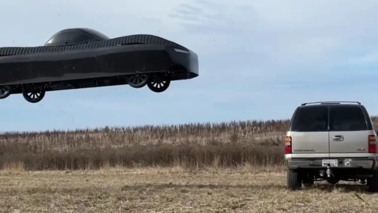 • سيارة طائرة جديدة تحلق فوق السيارات الأخرى في الزحام