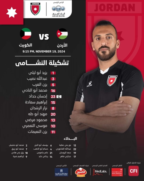 تشكيلة منتخب النشامى لمواجهة نظيره الكويتي (أسماء )