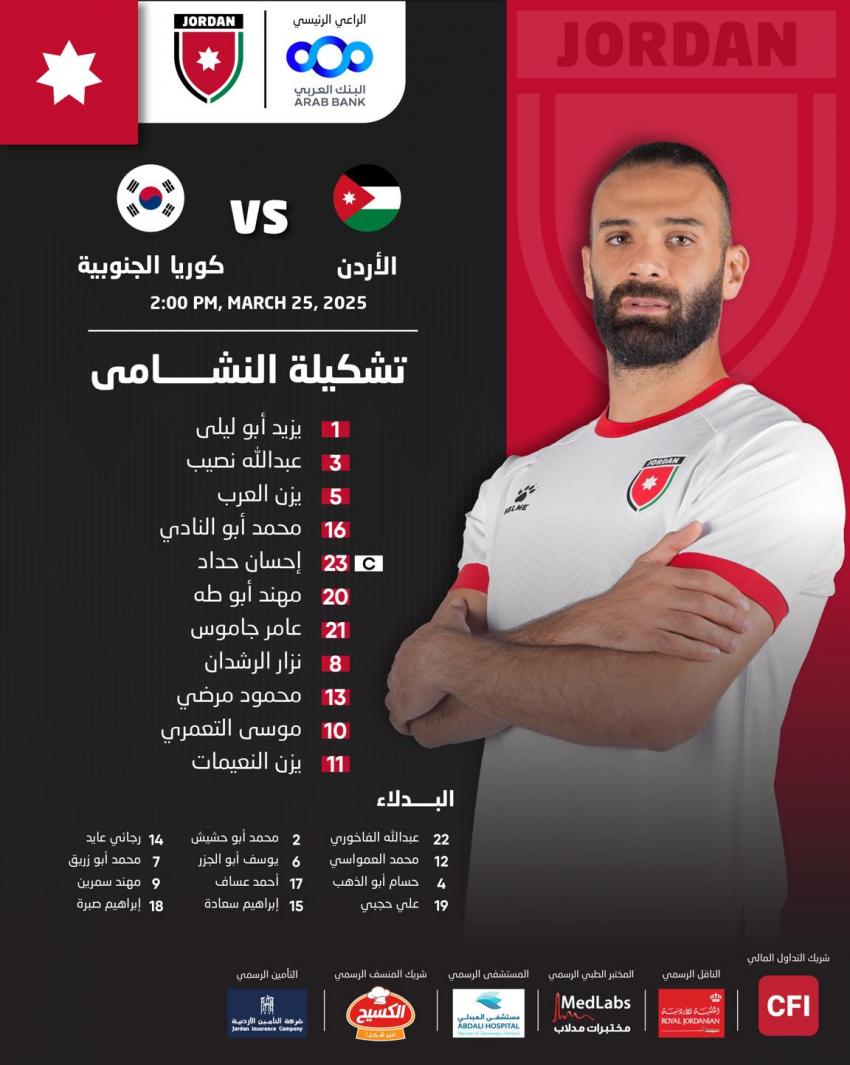 • تشكيلة النشامى أمام كوريا الجنوبية بالتصفيات المونديالية