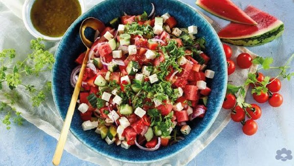 أسهل وأسرع طريقة لتحضير سلطة البطيخ والجبن المالح.. بالخطوات