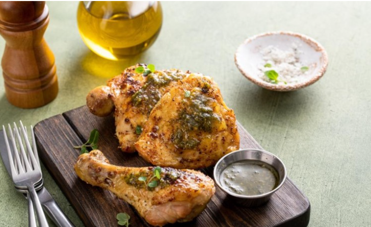 • الدجاج المشوي بالتتبيلة الخاصة والتوابل العربية الحارة