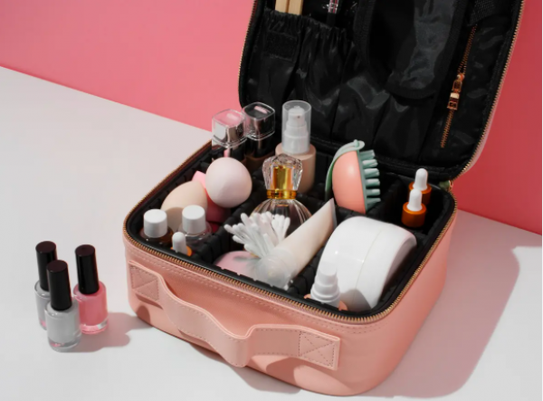 • مستحضرات تجميل أساسية في حقيبة السفر
