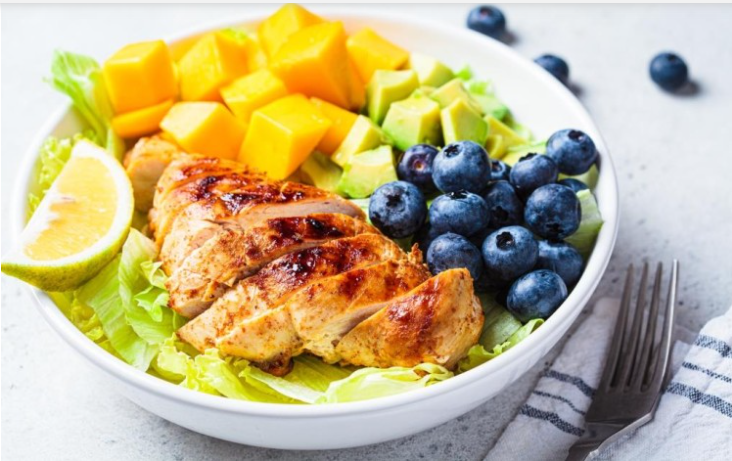 • سلطة الدجاج المشوي بقطع المانجو والأفوكادو
