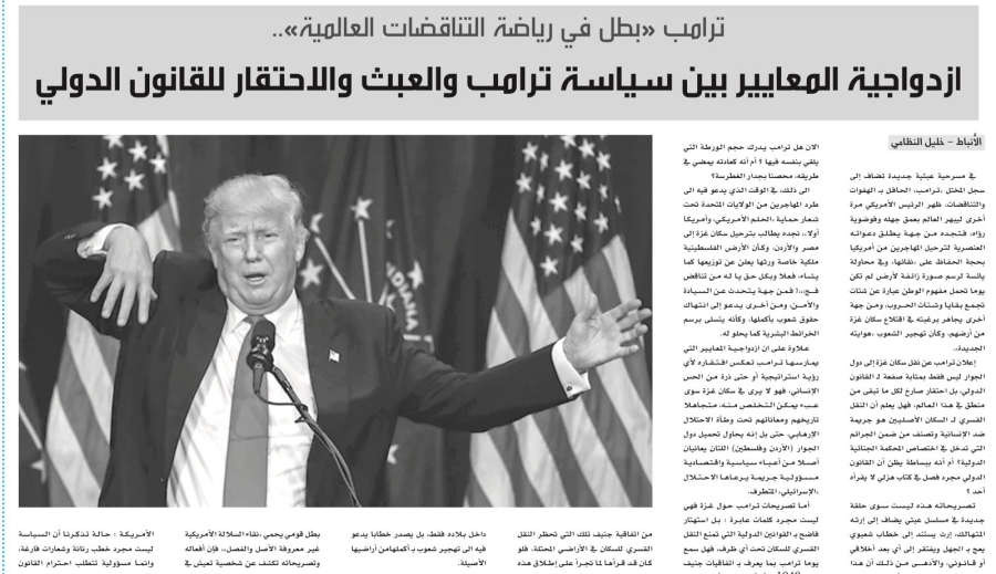 • صورة نقدية ساخرة أضعها بين ايديكم،،، - ترامب "بطل في رياضة التناقضات العالمية" - ازدواجية المعايير بين سياسة ترامب والعبث والاحتقار للقانون الدولي